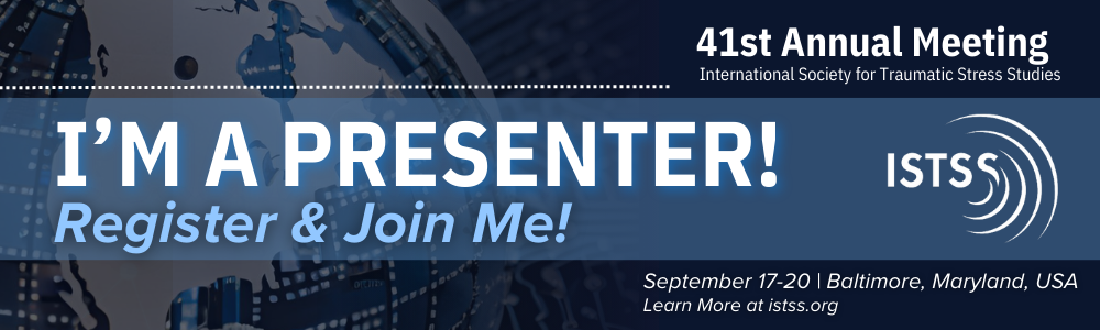 | I’m presenting at ISTSS 2025! Don’t miss this premier global forum for advancing trauma knowledge and practice. Register & join me. #ISTSS2025 |